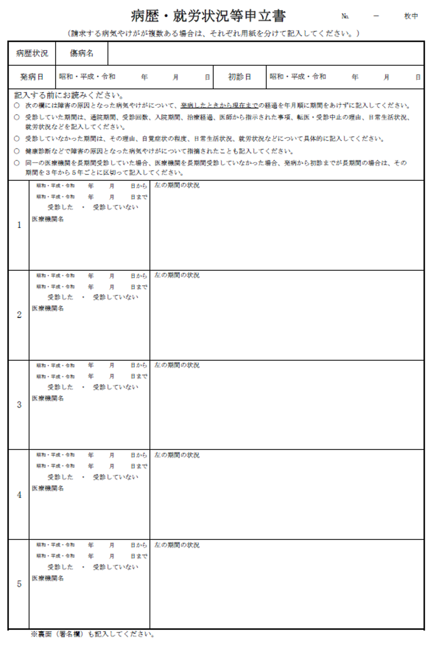 病歴・就労状況等申立書とは?