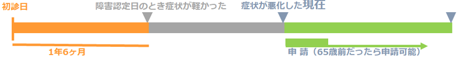 障害認定日の時は病状が軽く、その後症状が重くなった場合の請求パターンです。