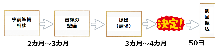 一般に、障害年金は請求の準備を始めてから約6~9か月かかります。当法人では、皆様に1日でも早く障害年金を届けるべく、精一杯サポートいたします。