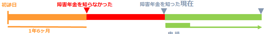 通常の障害年金請求パターンです。障害認定日から障害年金が支給されます。